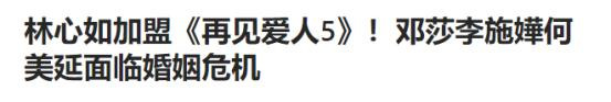 羊城派|林心如加盟《再见爱人5》!邓莎李施嬅何美延面临婚姻危机