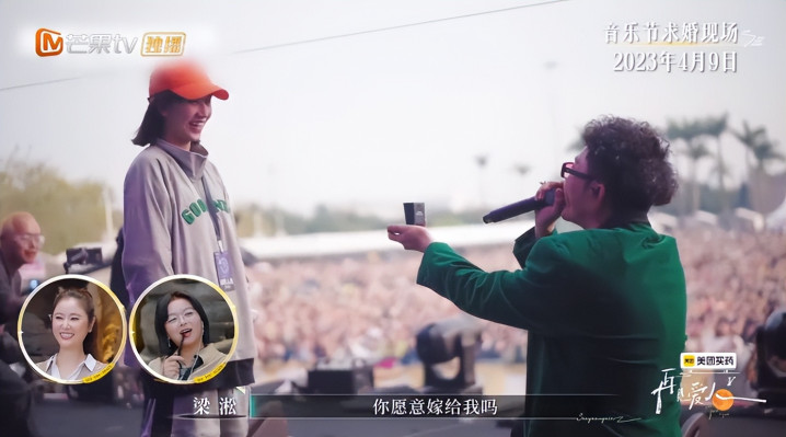 俩人都是歌手,梁淞在一次音乐会上,站在台上万众瞩目之下,向何美延求婚,这对不懂仪式感的梁淞来说,已经是能做出最浪漫的事了。