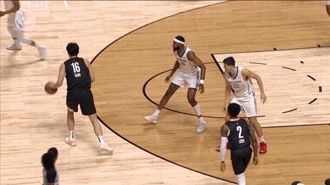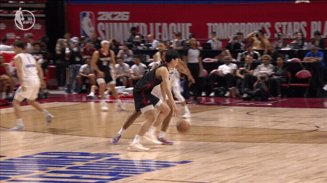 小杨在弧顶站位时的支配球能力在这场夏季联赛的比赛中显得超模,但他在比赛中让对手感到恐慌的还不止于此——他还具备射程,以及一些持球面框的技术。
