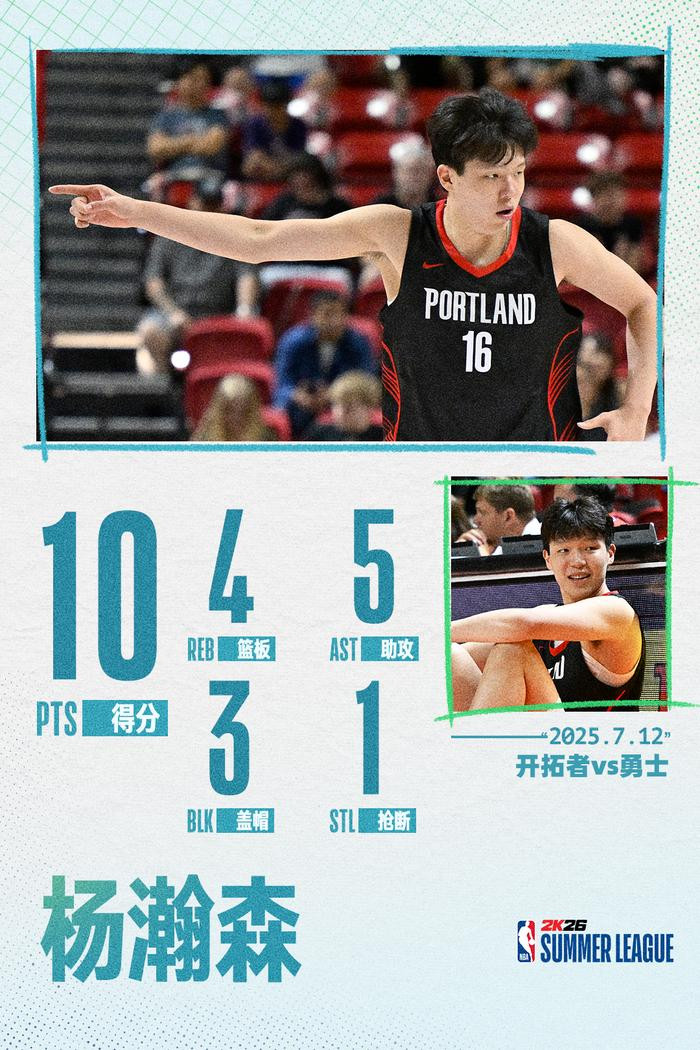 在开拓者与勇士的拉斯维加斯夏联首战仅仅打了一节之后,杨瀚森就已经成为了无数波特兰本地球迷心目中新晋的“白月光”。