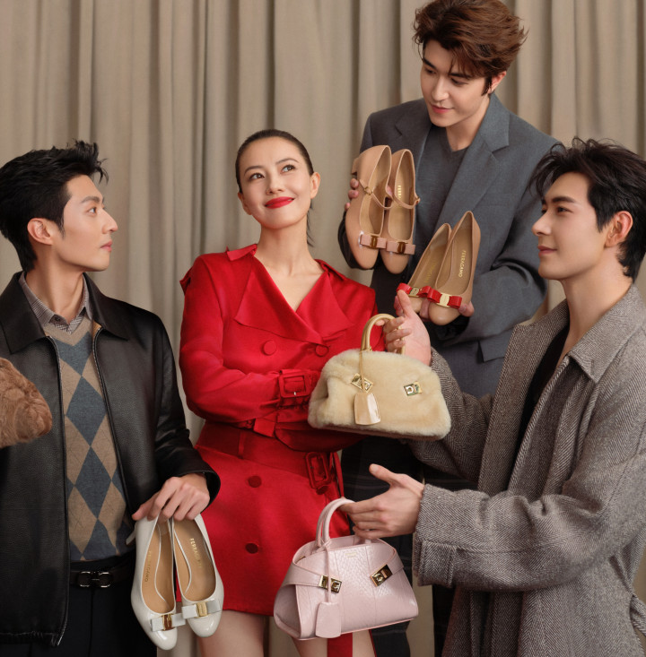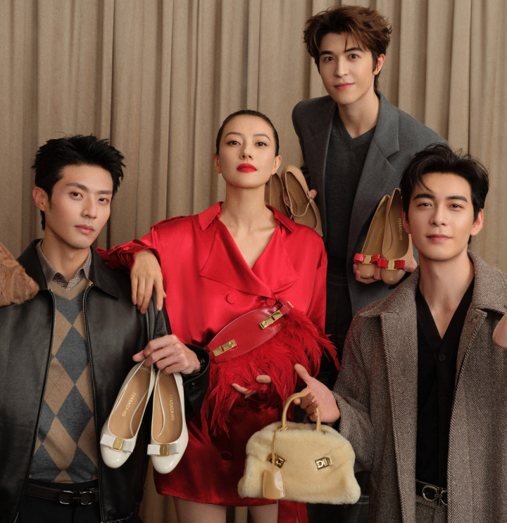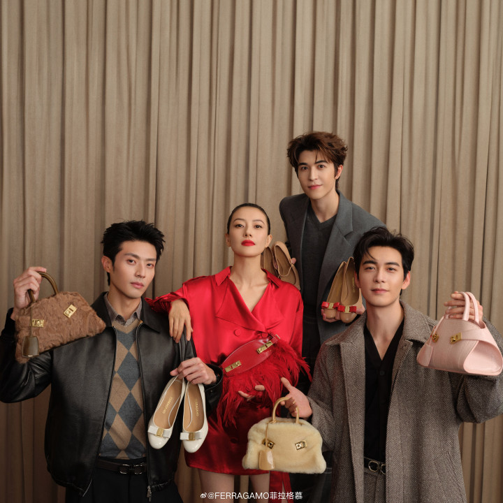 高圆圆被陈星旭陈靖可尹浩宇围在中间, 身穿红裙气场强大如女王