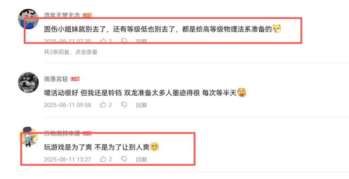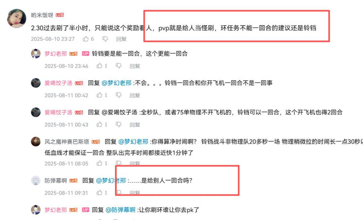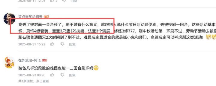 还有这层评论,“我去了被对面一回合秒了,刷不过有什么意义”。
