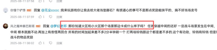 最后这位大哥更绝,压轴出场的,“你知道火区和小火区那个场景那边卡成什么样子吗”?