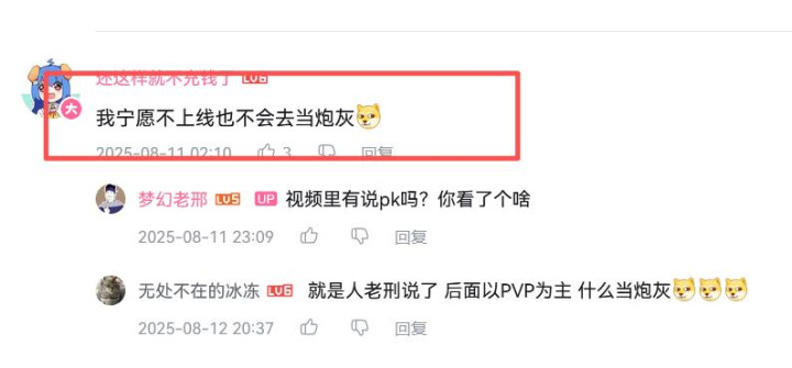 这层楼说“PVP就是给别人当怪刷”,下面还有人说“是给别人一回合”。