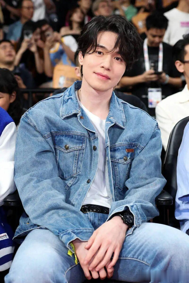 和其他男星不起眼的着装相比,他这件做旧的水洗牛仔外套,倒是有起到了减龄10岁的效果。
