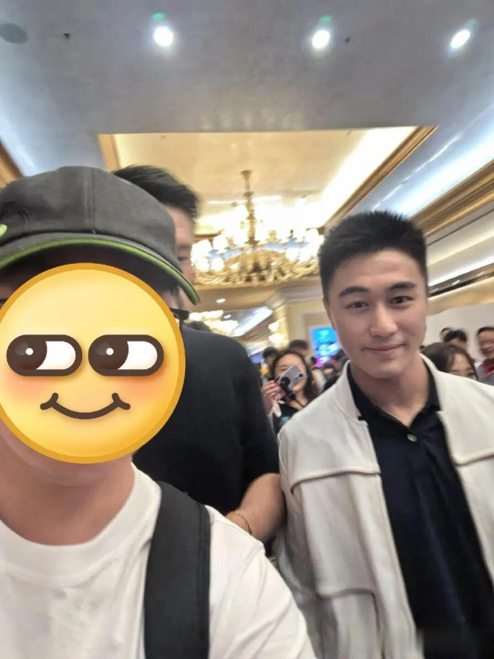 再看到坐在莫文蔚身后的白衣小伙,我还有点怀疑,也太像赌王儿子、奚梦瑶老公何猷君了,找了一张粉丝合照一对比,才发现衣服细节都对得上,确定是他。