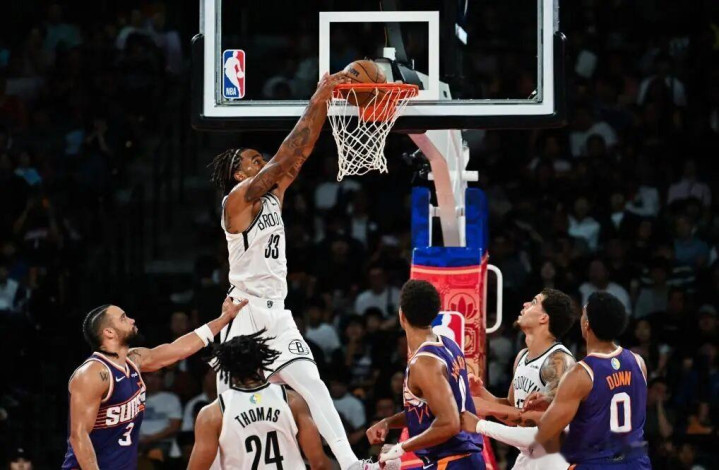 首战就是布鲁克林篮网队(白)VS菲尼克斯太阳队(紫)