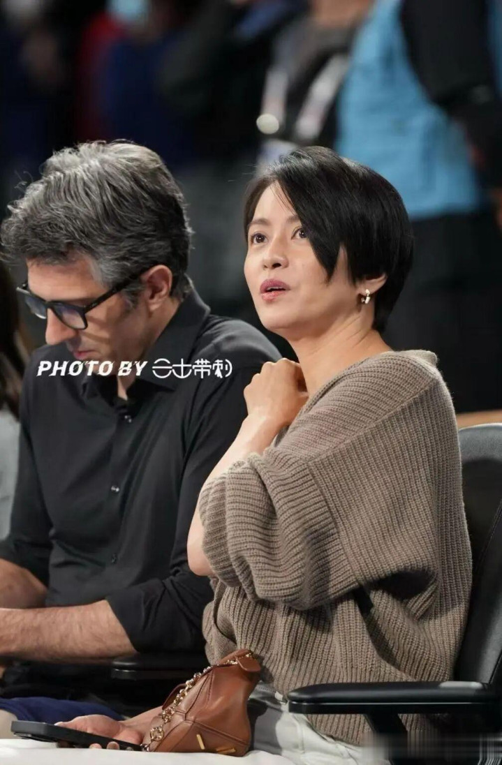 她倒是带上了西班牙老公Sergio,只是两人都比较低调地在一旁静静观赛。